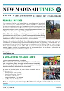 We pray that this term continues to be successful, eventful, and beneficial for all. With the continued support of our New Madinah College family, we are confident the College will continue to go from strength to strength, Insha’Allah.